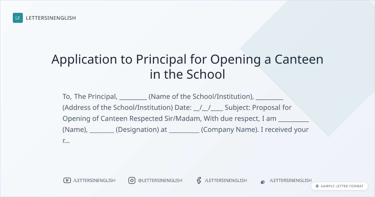 Application to Principal for Opening a Canteen in the School