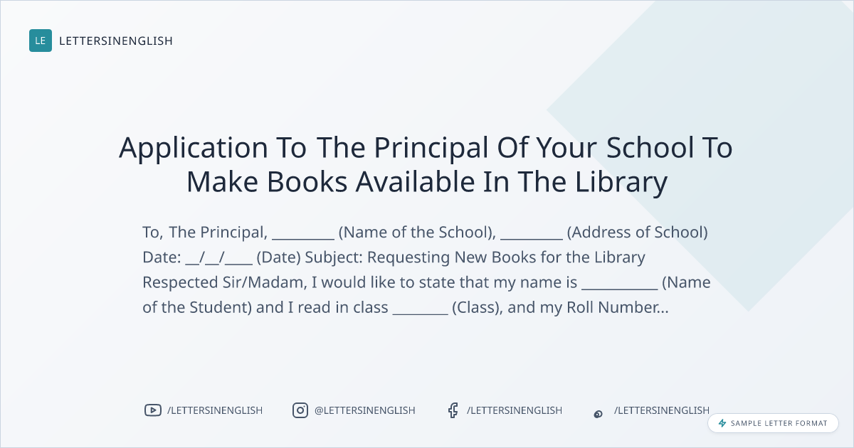 Application To The Principal Of Your School To Make Books Available In The Library