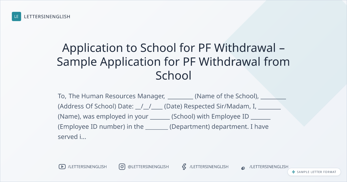 Application to School for PF Withdrawal – Sample Application for PF Withdrawal from School
