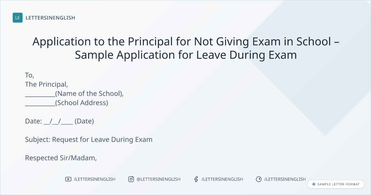 Application to the Principal for Not Giving Exam in School – Sample Application for Leave During Exam