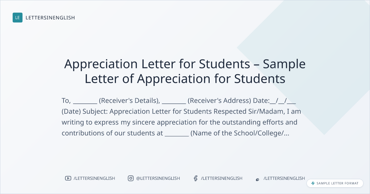 Subject: Appreciation Letter for Students