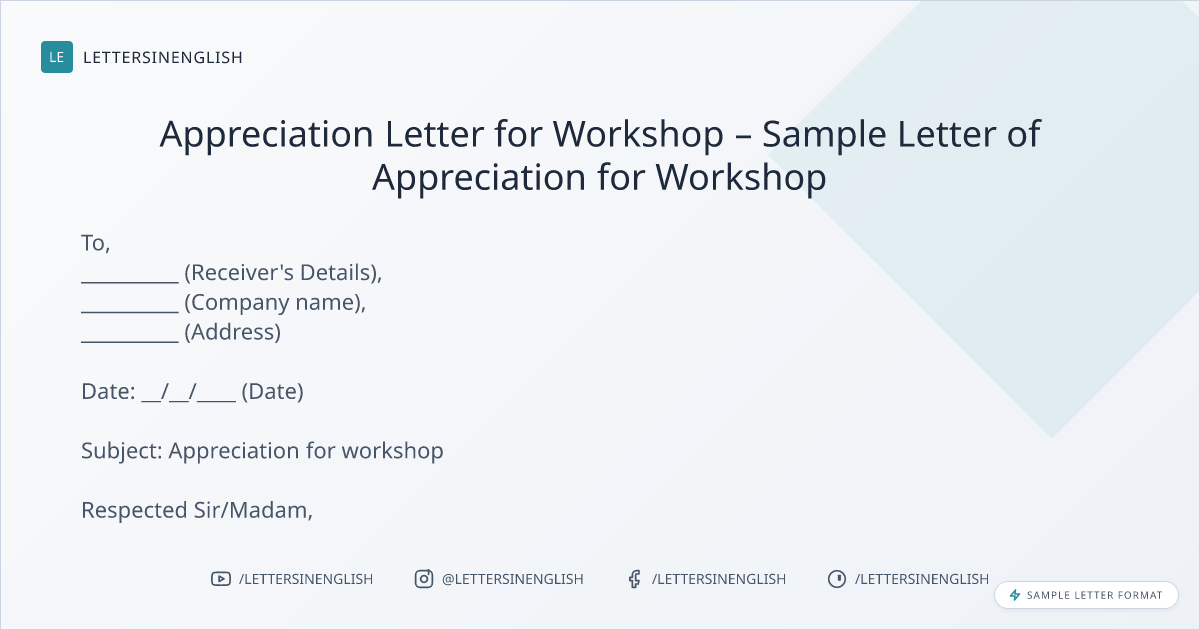 Appreciation Letter for Workshop – Sample Letter of Appreciation for Workshop