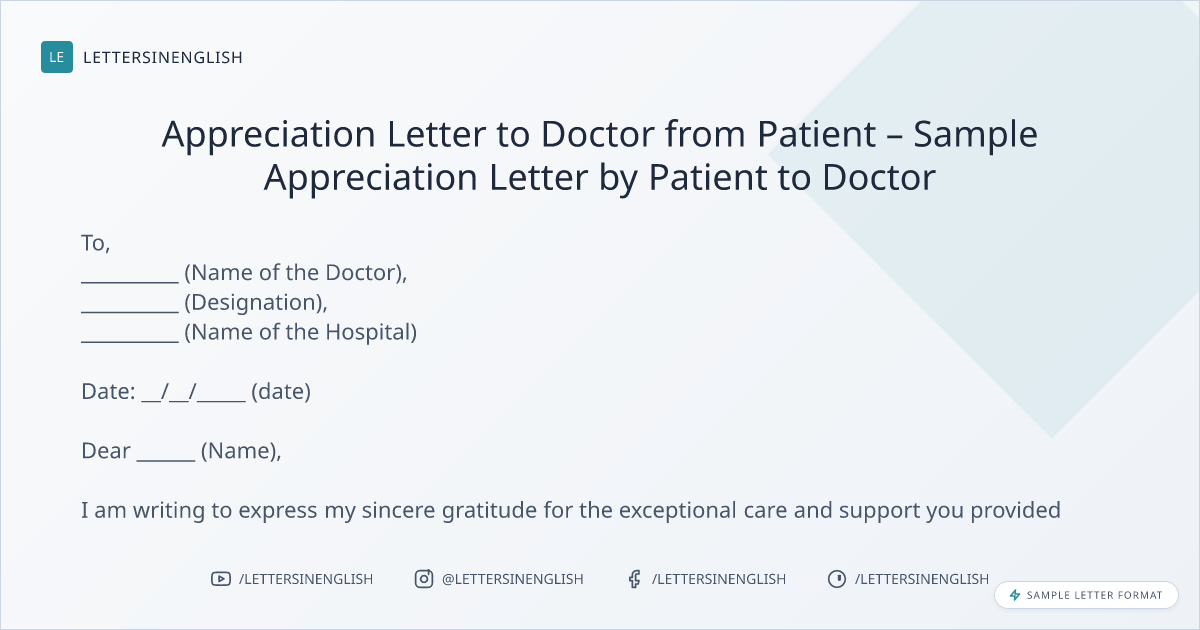Appreciation Letter to Doctor from Patient – Sample Appreciation Letter by Patient to Doctor