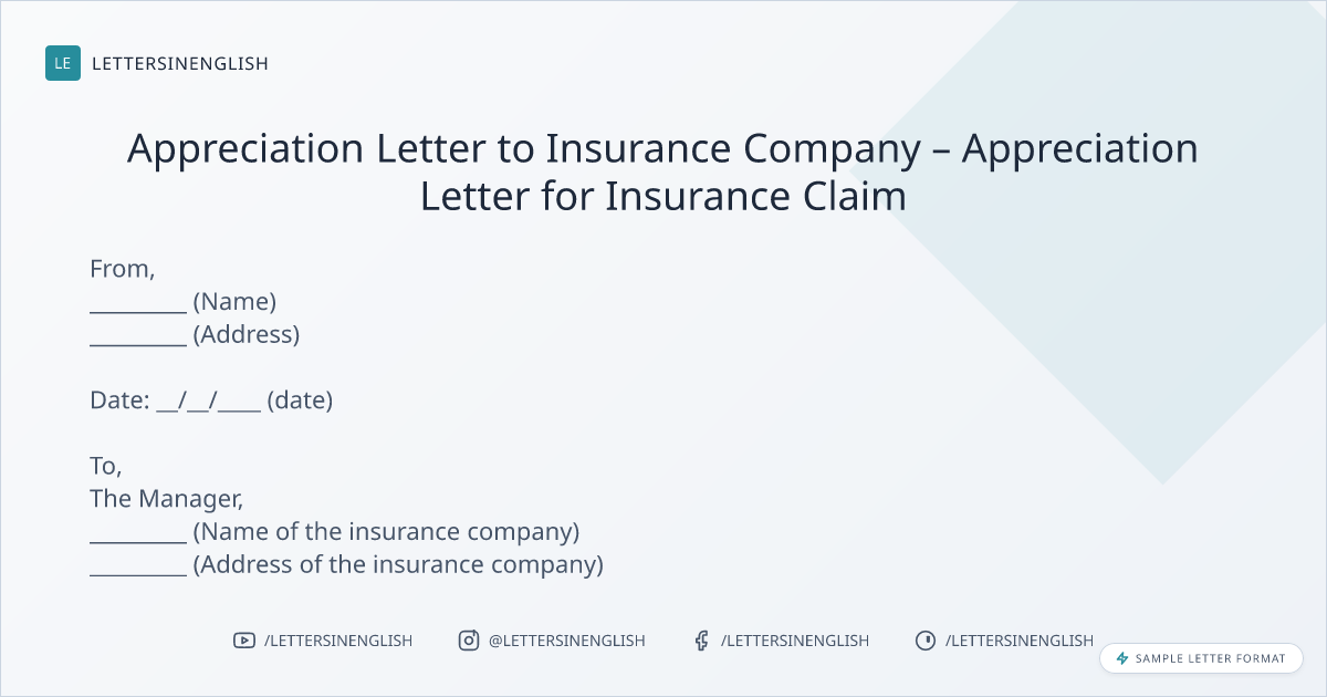 Appreciation Letter to Insurance Company – Appreciation Letter for Insurance Claim