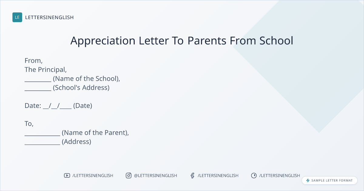 Appreciation Letter To Parents From School