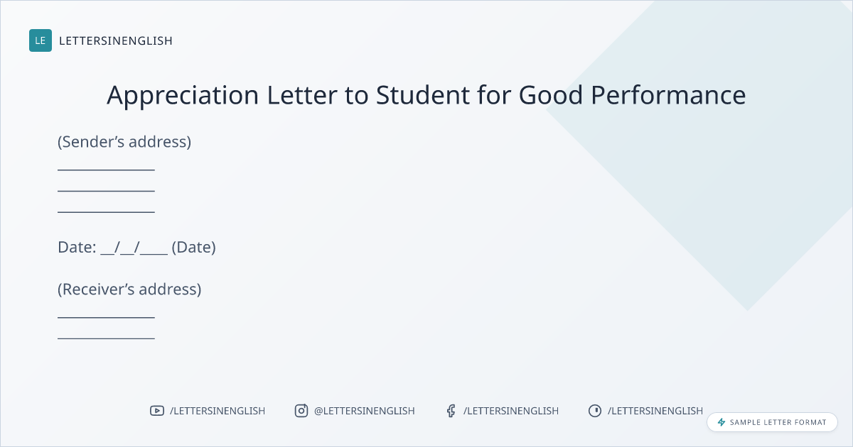 Appreciation Letter to Student for Good Performance