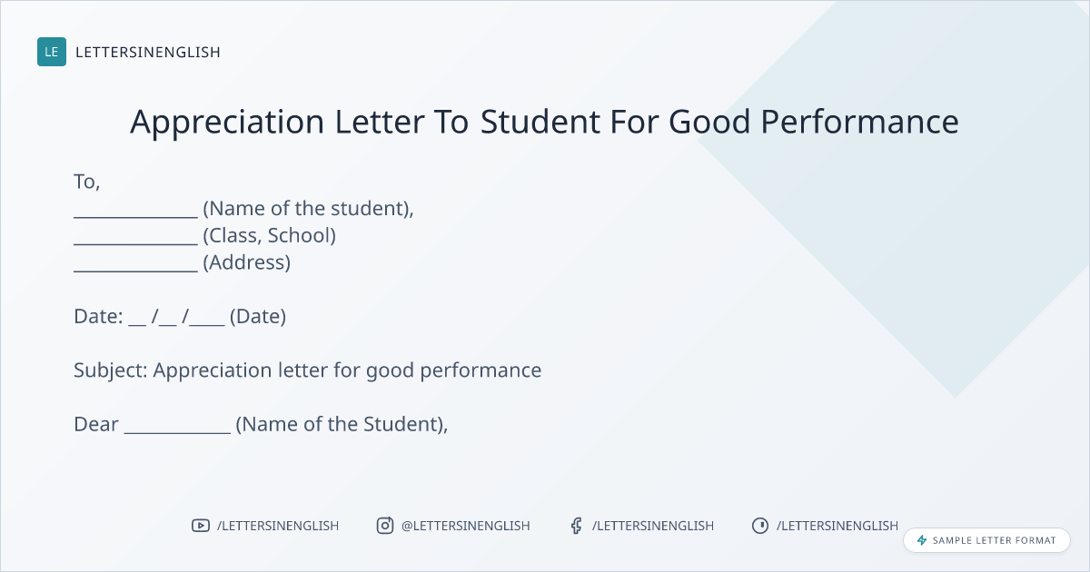 I am writing this letter to make sure my brightest student gets a good amount of appreciation. I see that you have been a good student throughout the year and you must receive feedback regarding the same.