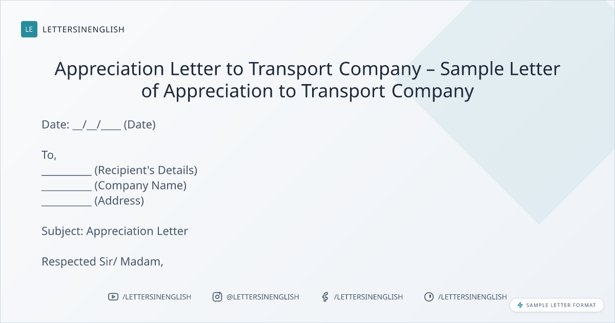 Appreciation Letter to Transport Company – Sample Letter of Appreciation to Transport Company