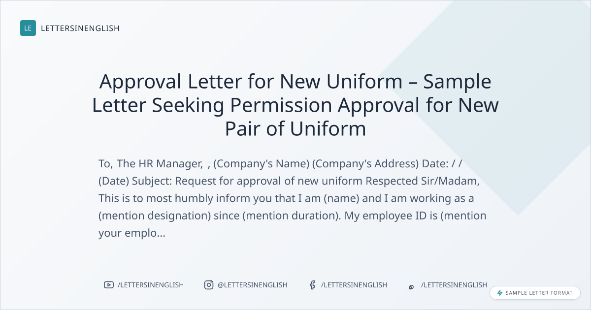 Approval Letter for New Uniform – Sample Letter Seeking Permission Approval for New Pair of Uniform