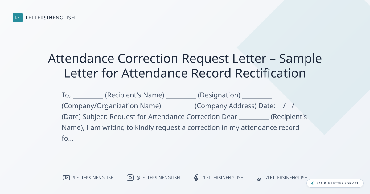 Attendance Correction Request Letter – Sample Letter for Attendance Record Rectification