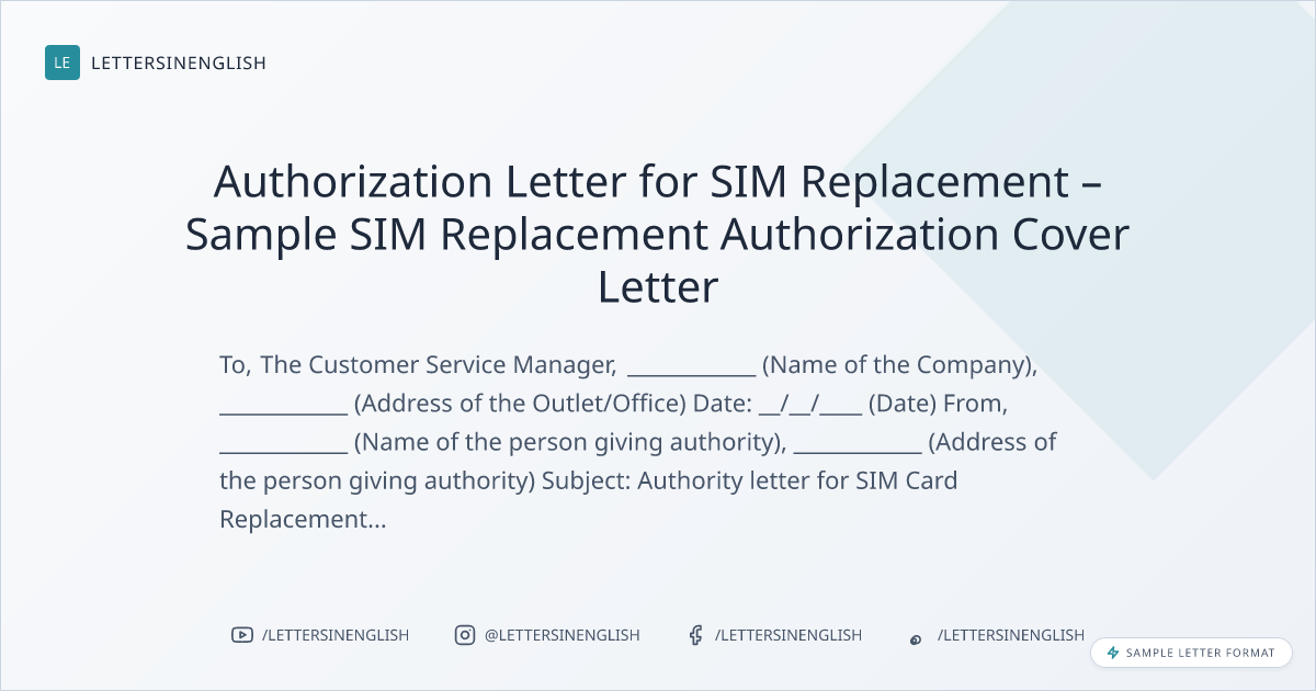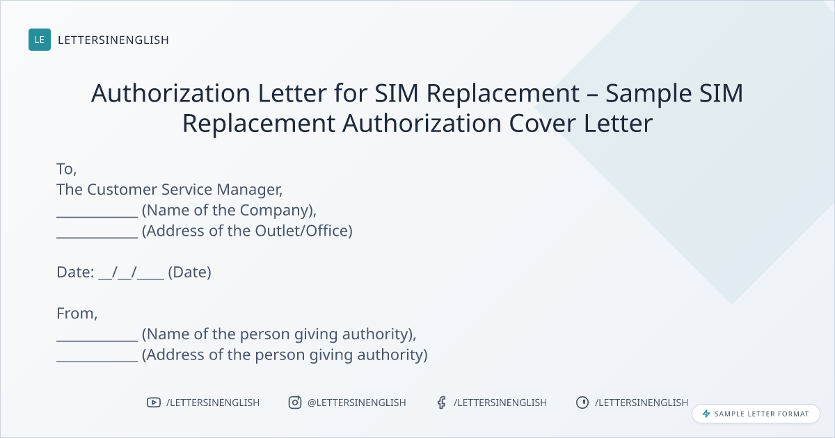 Authorization Letter for SIM Replacement – Sample SIM Replacement Authorization Cover Letter