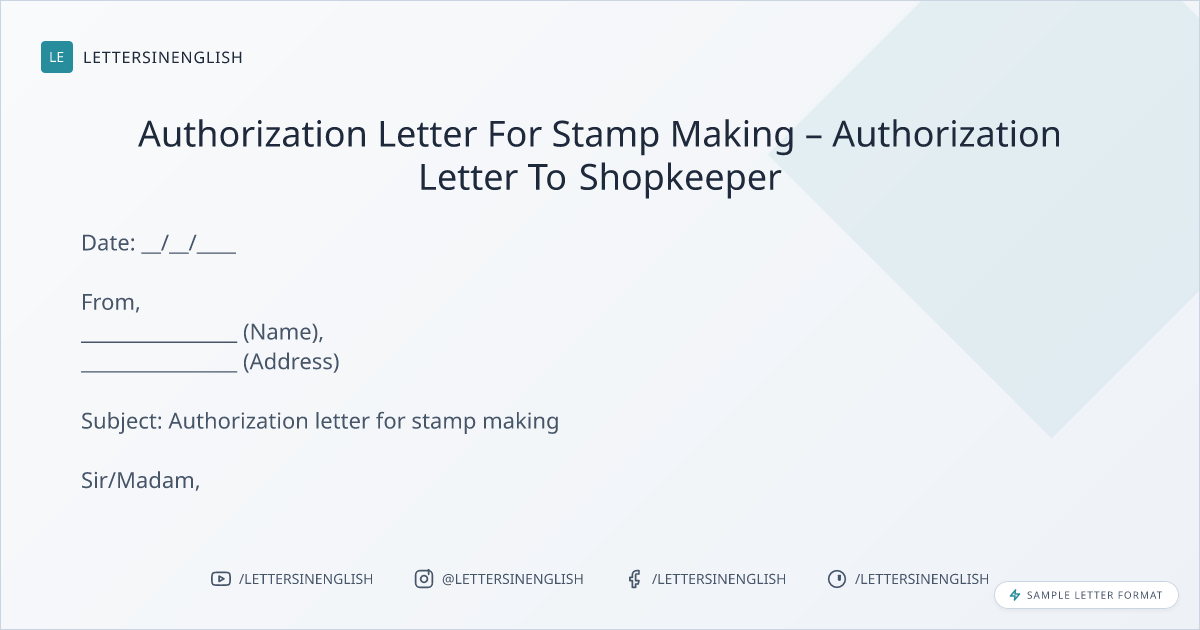 Authorization Letter For Stamp Making – Authorization Letter To Shopkeeper