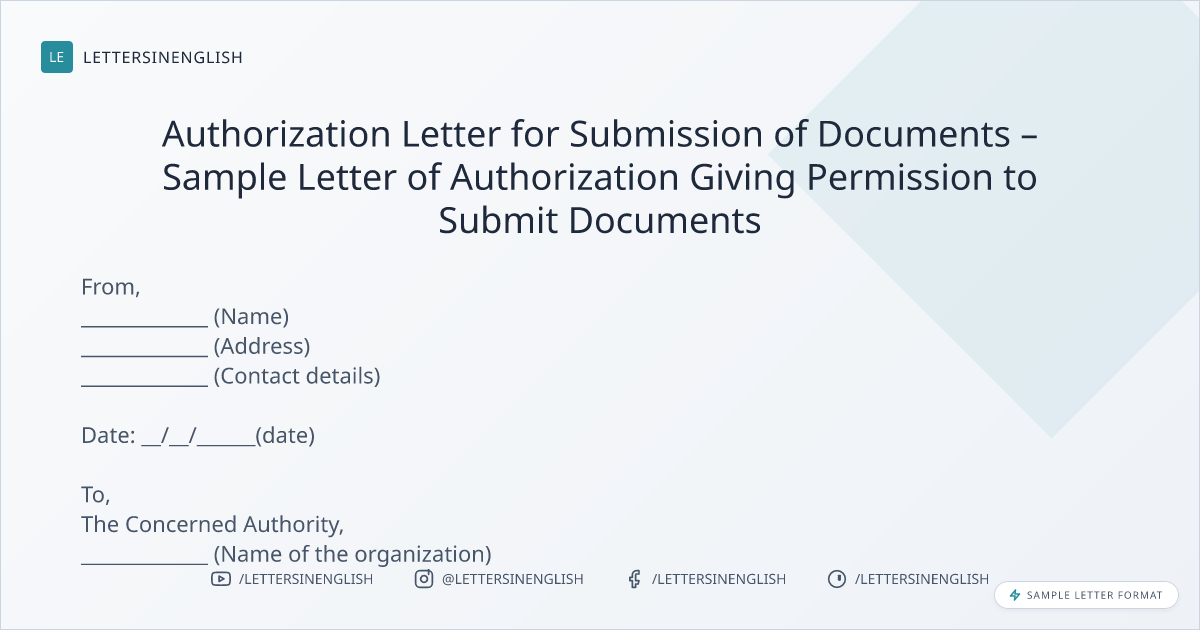 Authorization Letter for Submission of Documents – Sample Letter of Authorization Giving Permission to Submit Documents