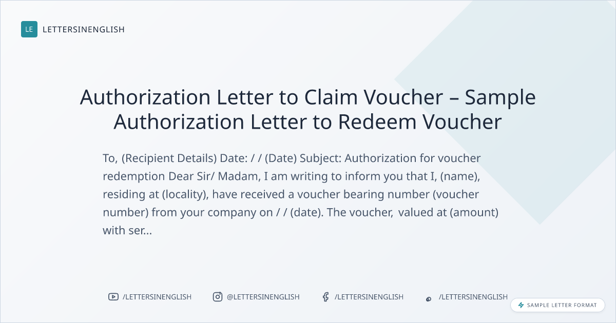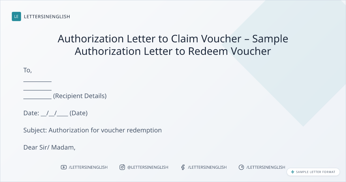 Authorization Letter to Claim Voucher – Sample Authorization Letter to Redeem Voucher