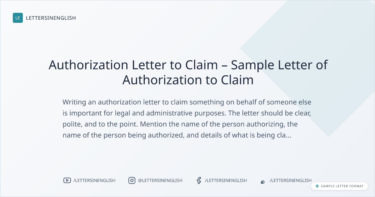 Authorization Letter to Claim – Sample Letter of Authorization to Claim