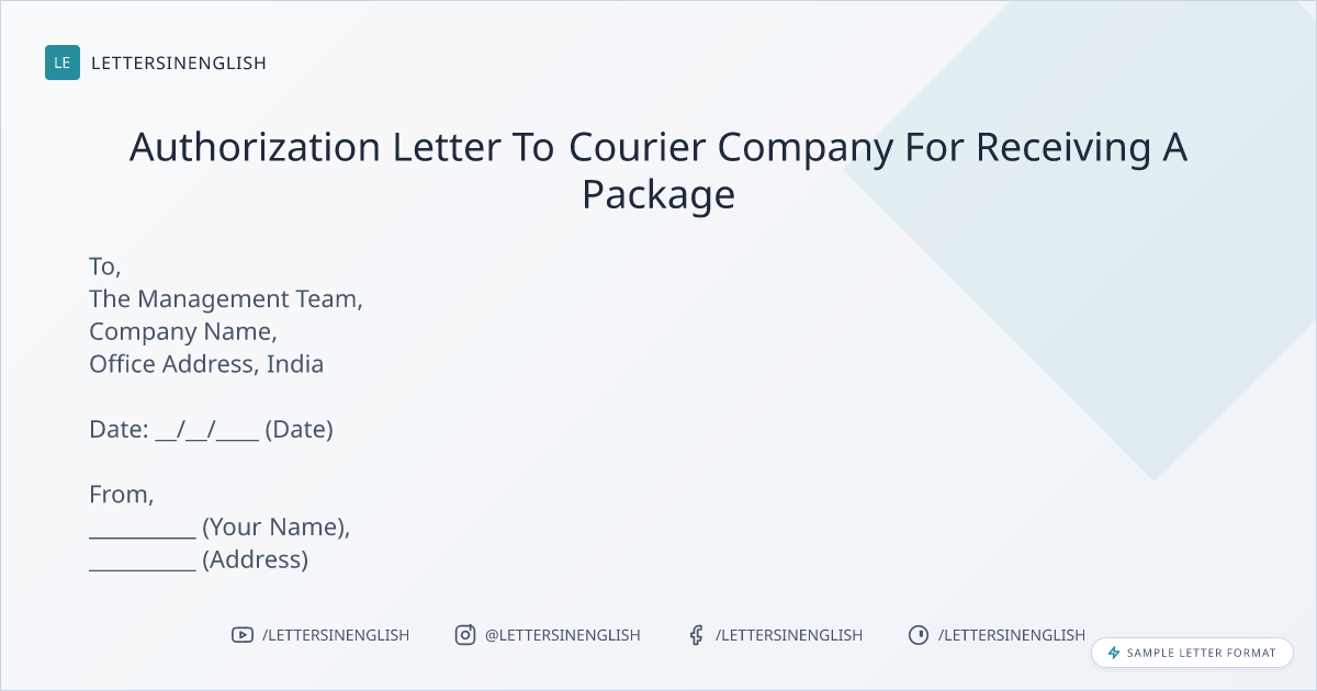 Authorization Letter To Courier Company For Receiving A Package