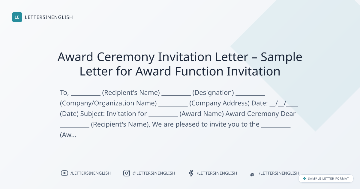 Award Ceremony Invitation Letter – Sample Letter for Award Function Invitation