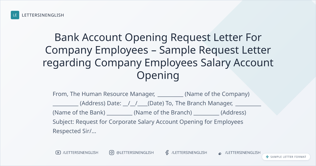 Sample Request Letter regarding Company Employees Salary Account Opening