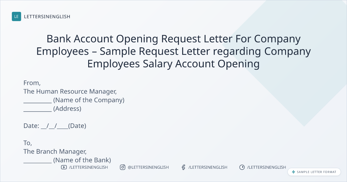 Bank Account Opening Request Letter For Company Employees – Sample Request Letter regarding Company Employees Salary Account Opening