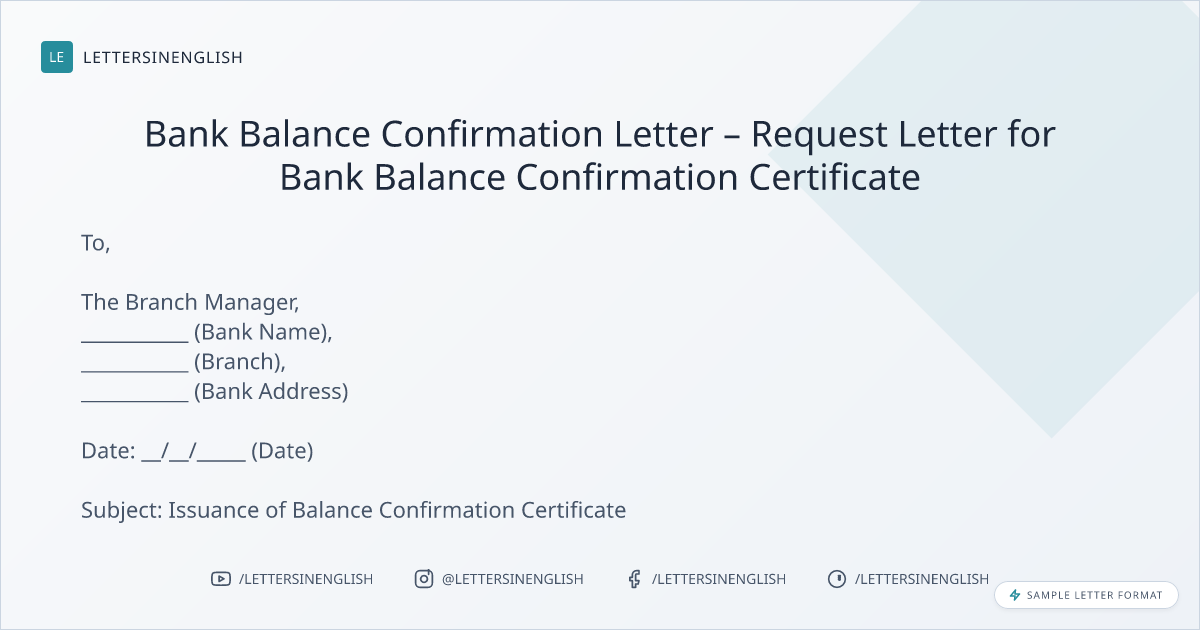 Bank Balance Confirmation Letter – Request Letter for Bank Balance Confirmation Certificate