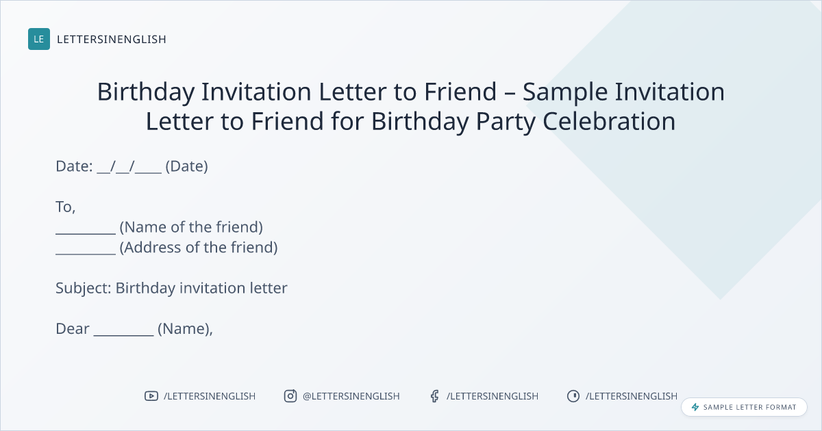 Birthday Invitation Letter to Friend – Sample Invitation Letter to Friend for Birthday Party Celebration
