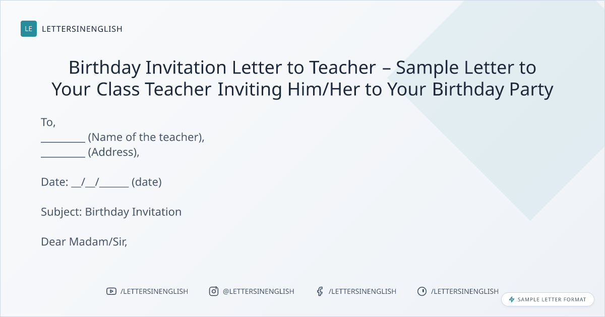 Birthday Invitation Letter to Teacher – Sample Letter to Your Class Teacher Inviting Him/Her to Your Birthday Party