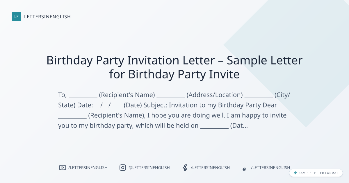 Birthday Party Invitation Letter – Sample Letter for Birthday Party Invite