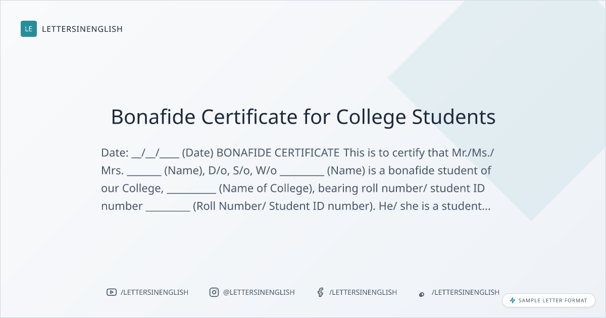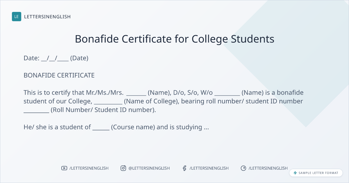 Bonafide Certificate for College Students