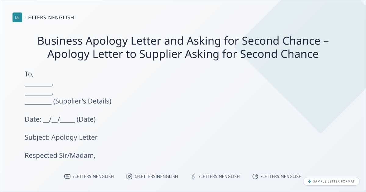 Business Apology Letter and Asking for Second Chance – Apology Letter to Supplier Asking for Second Chance