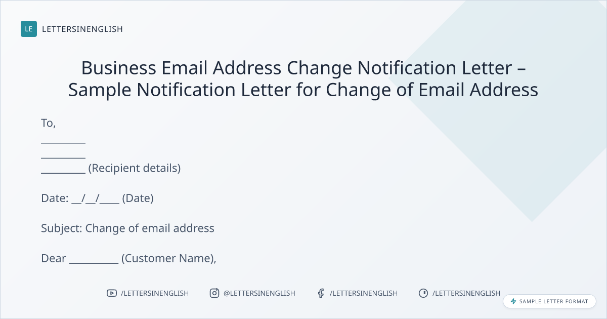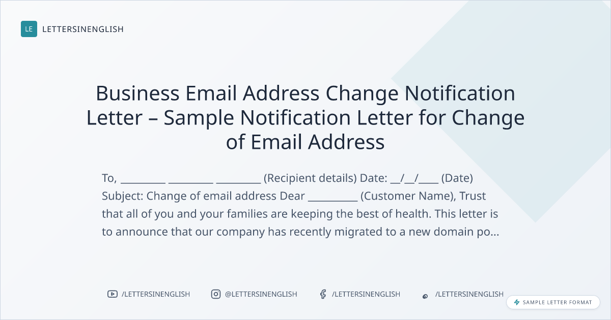 Business Email Address Change Notification Letter – Sample Notification Letter for Change of Email Address