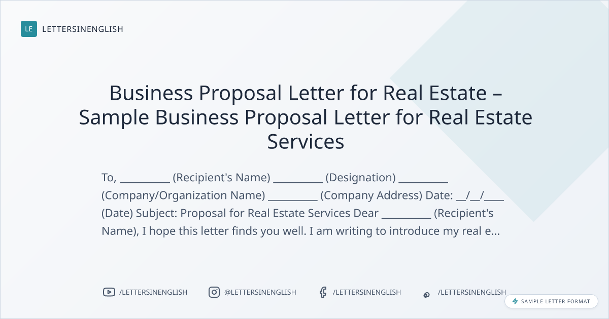 Business Proposal Letter for Real Estate – Sample Business Proposal Letter for Real Estate Services