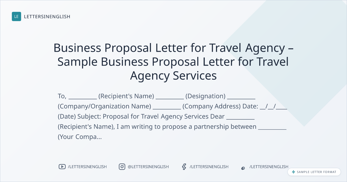 Business Proposal Letter for Travel Agency – Sample Business Proposal Letter for Travel Agency Services