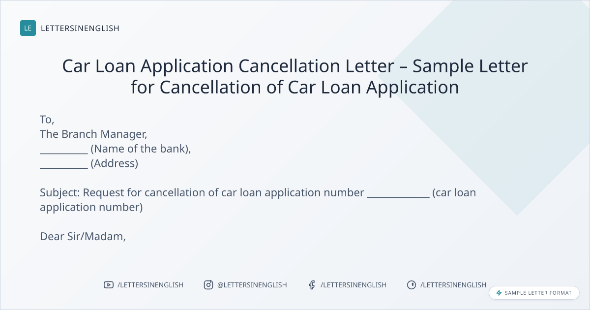 Car Loan Application Cancellation Letter – Sample Letter for Cancellation of Car Loan Application