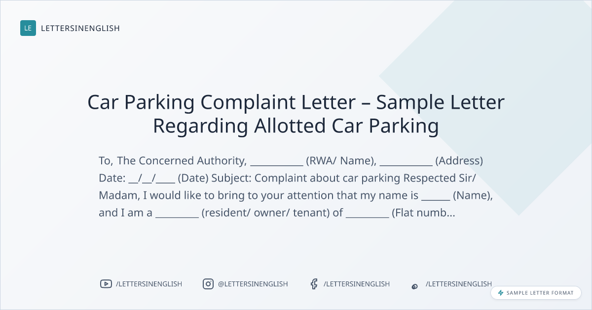 Car Parking Complaint Letter – Sample Letter Regarding Allotted Car Parking