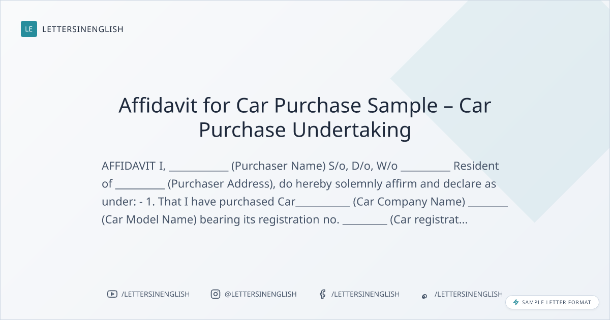 Affidavit for Car Purchase Sample – Car Purchase Undertaking
