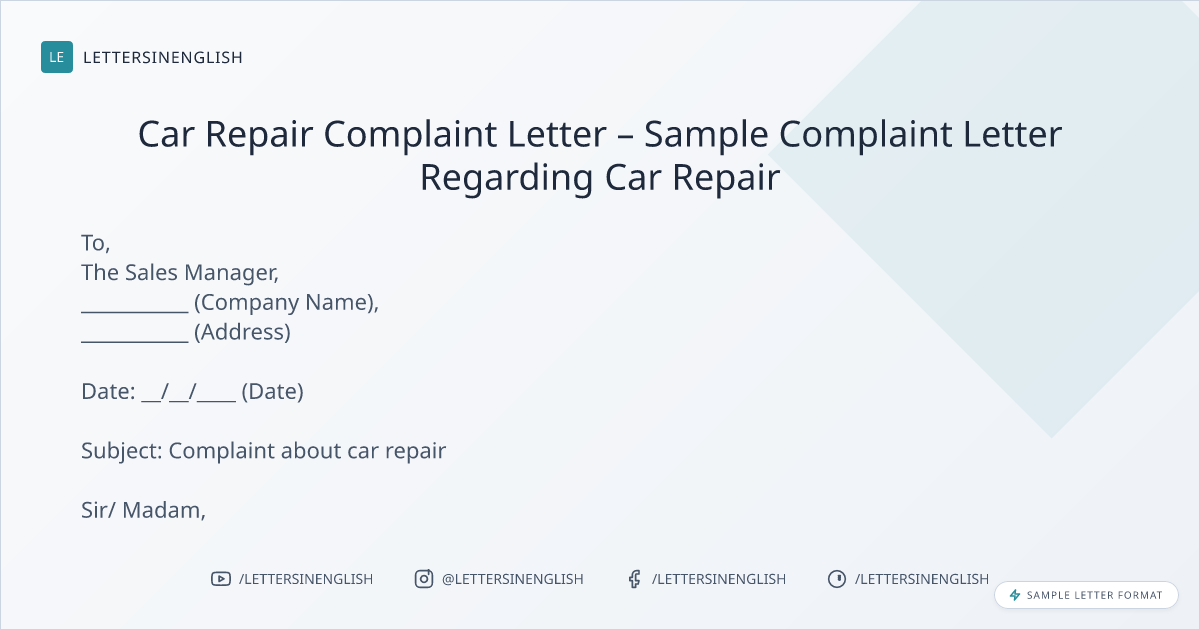 Car Repair Complaint Letter – Sample Complaint Letter Regarding Car Repair