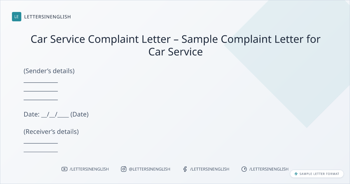 Car Service Complaint Letter – Sample Complaint Letter for Car Service
