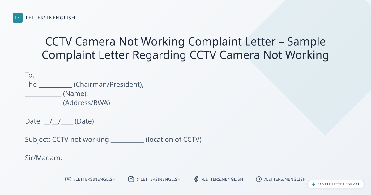 CCTV Camera Not Working Complaint Letter – Sample Complaint Letter Regarding CCTV Camera Not Working