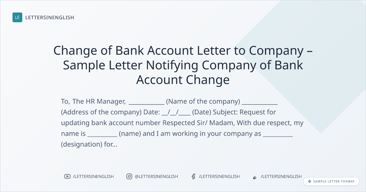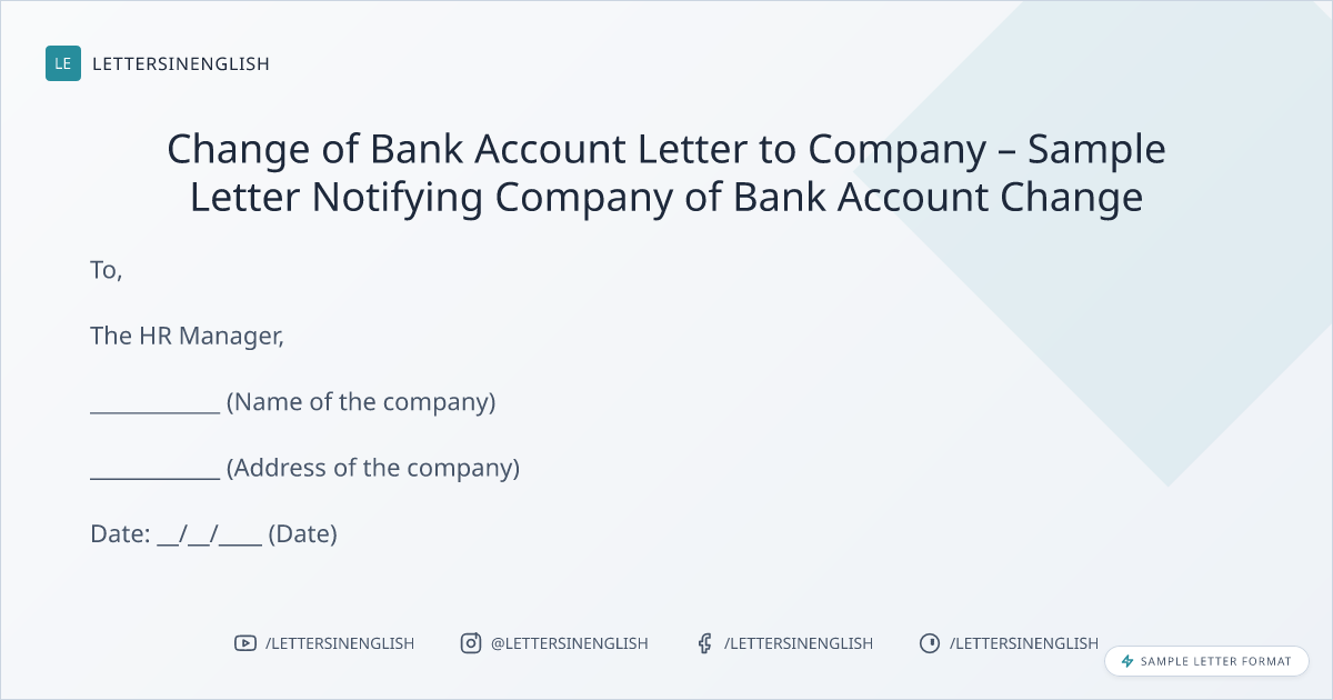 Change of Bank Account Letter to Company – Sample Letter Notifying Company of Bank Account Change