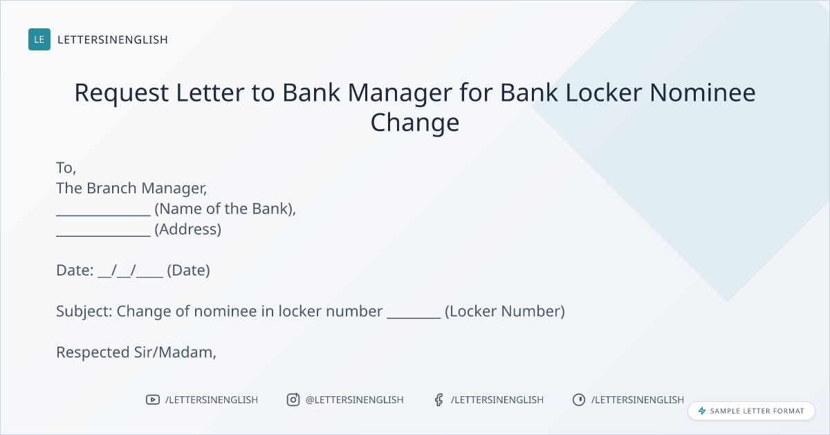 Request Letter to Bank Manager for Bank Locker Nominee Change