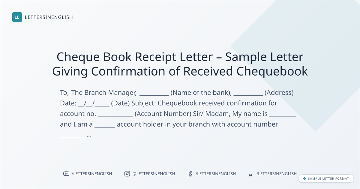 Sample Cheque Book Receipt Letter