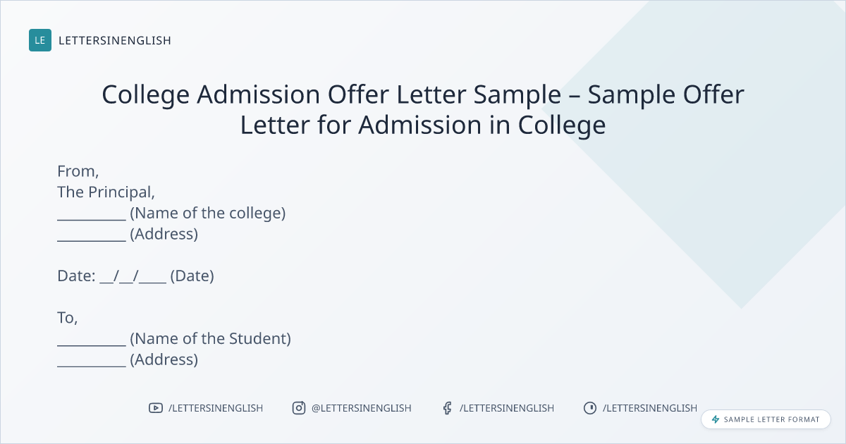 College Admission Offer Letter Sample – Sample Offer Letter for Admission in College