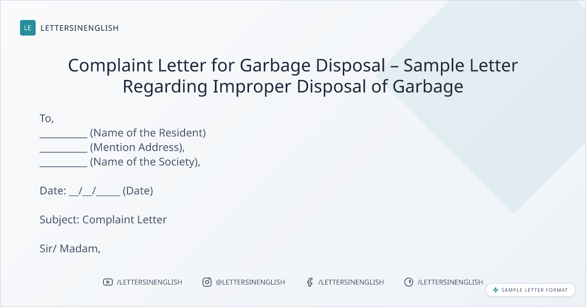 Complaint Letter for Garbage Disposal – Sample Letter Regarding Improper Disposal of Garbage