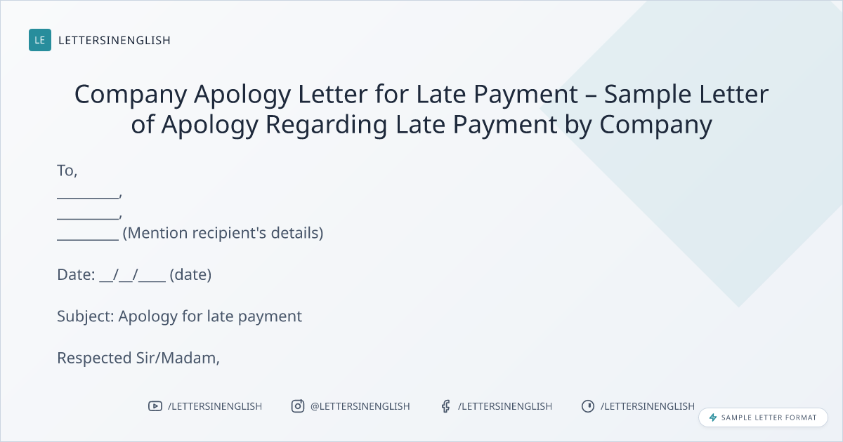 Company Apology Letter for Late Payment – Sample Letter of Apology Regarding Late Payment by Company