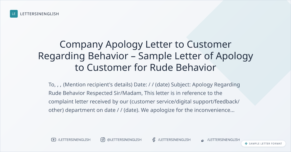Company Apology Letter to Customer Regarding Behavior – Sample Letter of Apology to Customer for Rude Behavior
