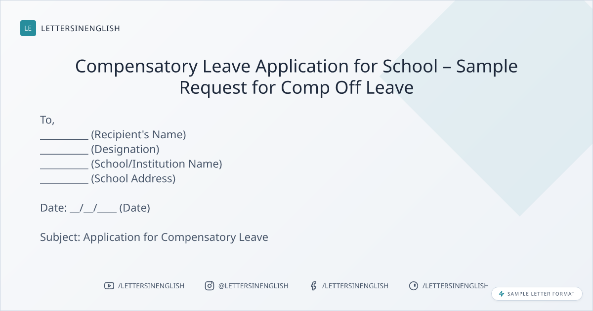 Compensatory Leave Application for School – Sample Request for Comp Off Leave Format