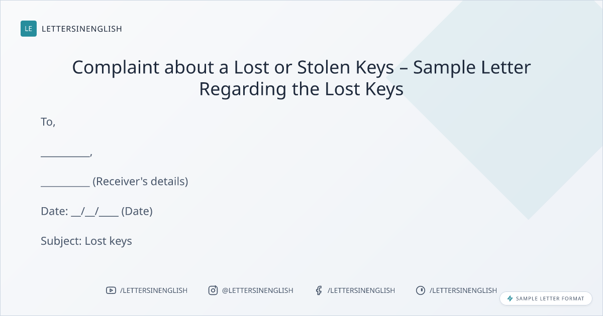 Complaint about a Lost or Stolen Keys – Sample Letter Regarding the Lost Keys