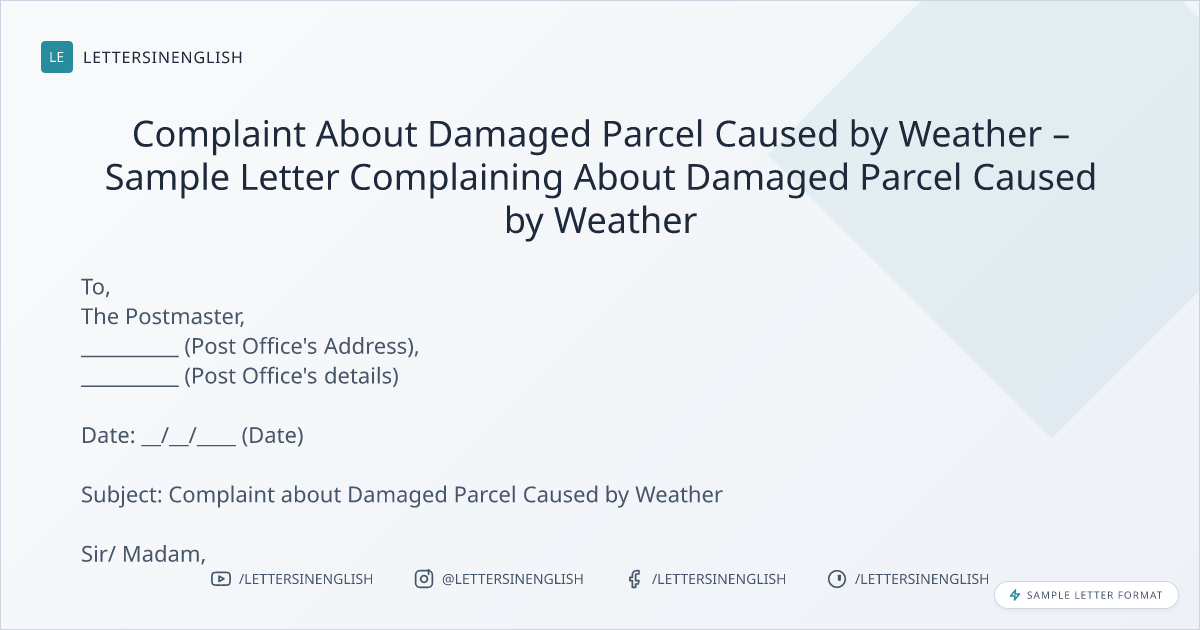 Sample Complaint Letter About Damaged Parcel Caused by Weather