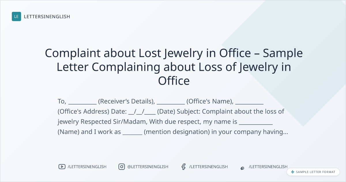 Complaint about Lost Jewelry in Office – Sample Letter Complaining about Loss of Jewelry in Office