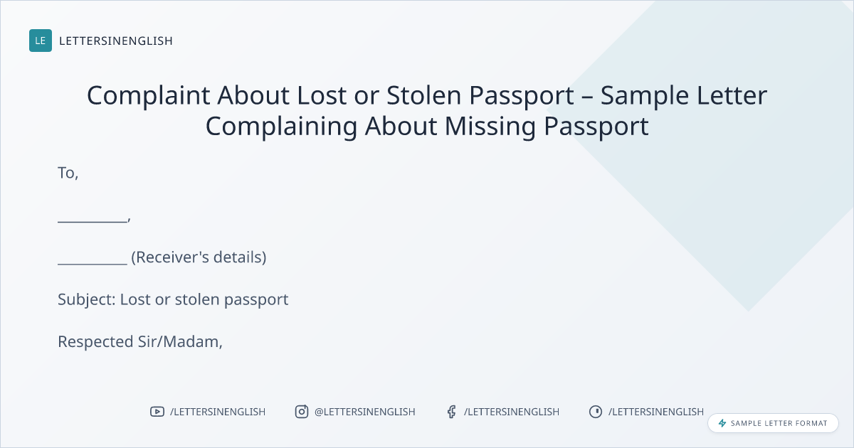 Complaint About Lost or Stolen Passport – Sample Letter Complaining About Missing Passport